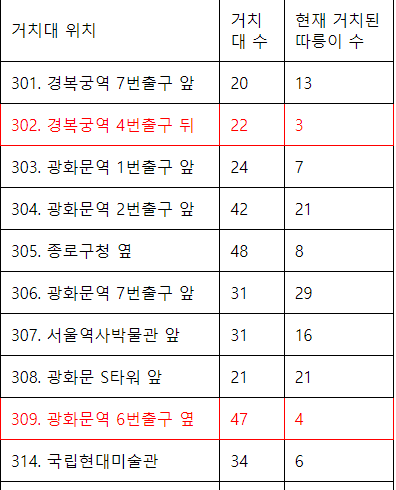 <td>현재 거치된 따릉이 수</td>