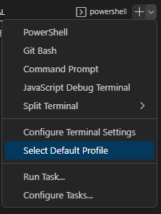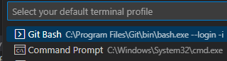 View > Terminal로 터미널을 연다음 Select Default Profile를 선택한다.