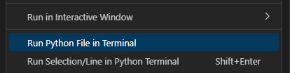 그리고 이걸 출력하려면 현재 페이지에서 우클릭 후 Run Python File in Terminal을 선택한다.