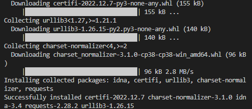 pip install requests를 통해서 requests 라이브러리를 설치해 준다.