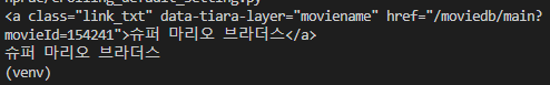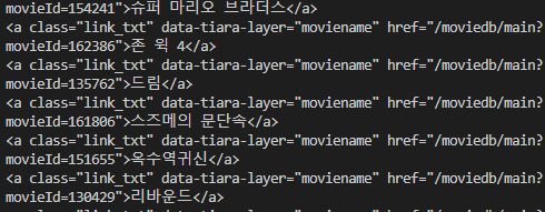 출력 결과 전체의 lis가 들어온 게 보인다. 이제 lis에서 각 영화의 정보를 가져온다.