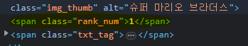 순위를 가져오고 싶기 때문에 순위가 적힌 공간을 클릭한다. 만약 해당 요소가 특정되지 않는다면 안내된 코드 내부에서 직접 찾아야 한다.