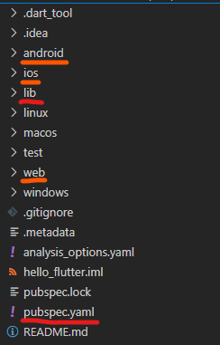 이중 직접적으로 수정이 되는 부분은 lib와 pubspec.yaml 두 가지이다.
