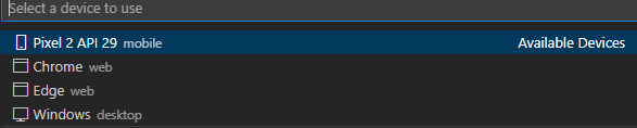 VSCode의 하단을 보면 현재 실행 중인 에뮬레이터를 확인할 수 있다.