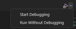 두 옵션 모두 앱을 실행하지만 디버깅은 코드의 에러나 문제를 찾기 위한 추가적인 동작이 작동하기 때문에 디버깅 없이 실행하는 Run Without Debugging 옵션이 더 빠르기 때문에 단순히 앱을 실행하는 게 목적이면 이 옵션을 선택한다.