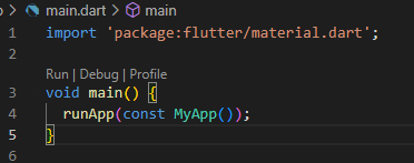 위 코드는 기본적으로 Flutter를 실행할 수 있도록 작성된 코드로 기본적으로 작성되어 있던 코드를 간략하게 만든 것이라 볼 수 있다.