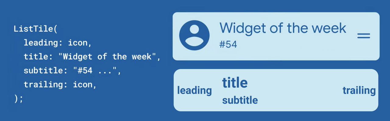 ListTile 위젯은 박스 안에 영역마다 서로 다른 위젯을 배치할 수 있는 편리한 기능을 가지고 있다.