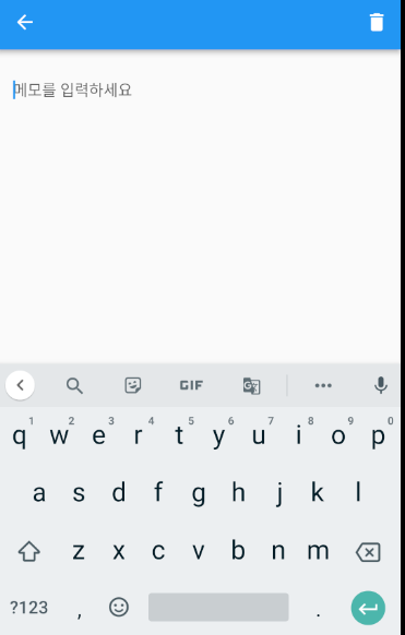 하단의 플로팅 버튼을 클릭하면 메모를 입력하는 페이지가 나타나고 메모 페이지에서 뒤로 가기를 누르면 다시 첫 페이지로 돌아가는 기능만 구현되어 있다.
