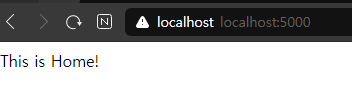 터미널 창에는 위와 같은 결과가 보이며 이제 브라우저를 열고 localhost:5000을 입력하면 페이지가 열린다.
