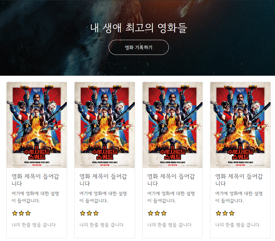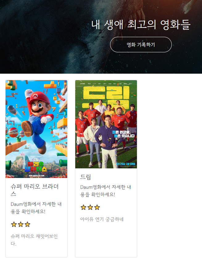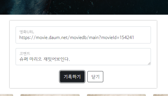 영화 리뷰 사이트를 만들어 놓았던걸 사용해서 이번엔 영화 url, 별점, 코멘트를 입력하고 페이지에 올려보도록 한다.