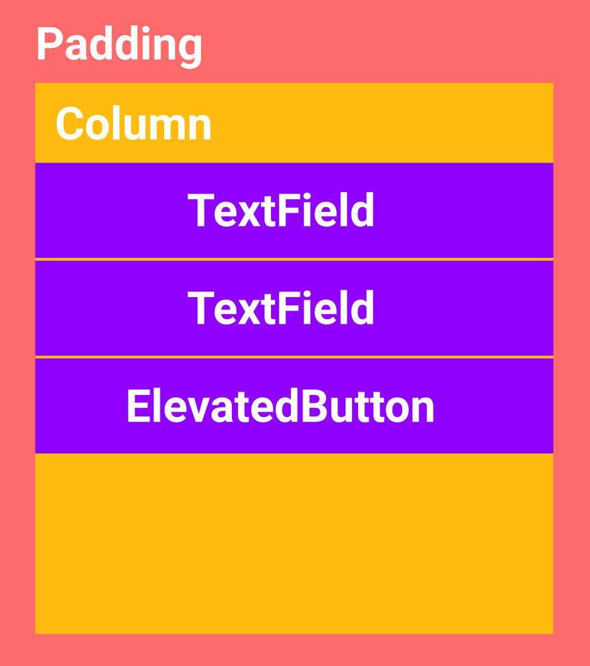 Scaffold의 body 속성에 위젯들의 배치는 아래의 그림처럼 되어있다.