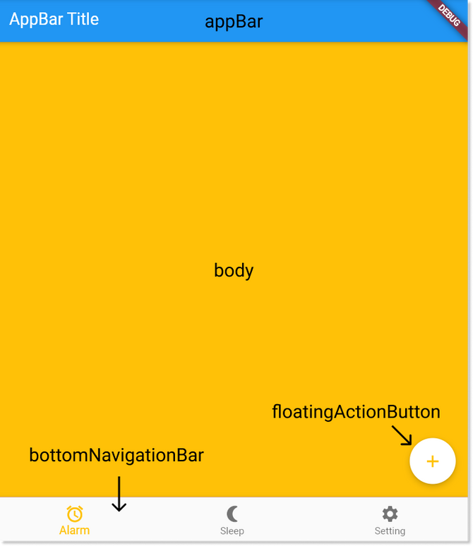 Scaffold의 속성을 사용해서 화면을 변경시켜 본다.