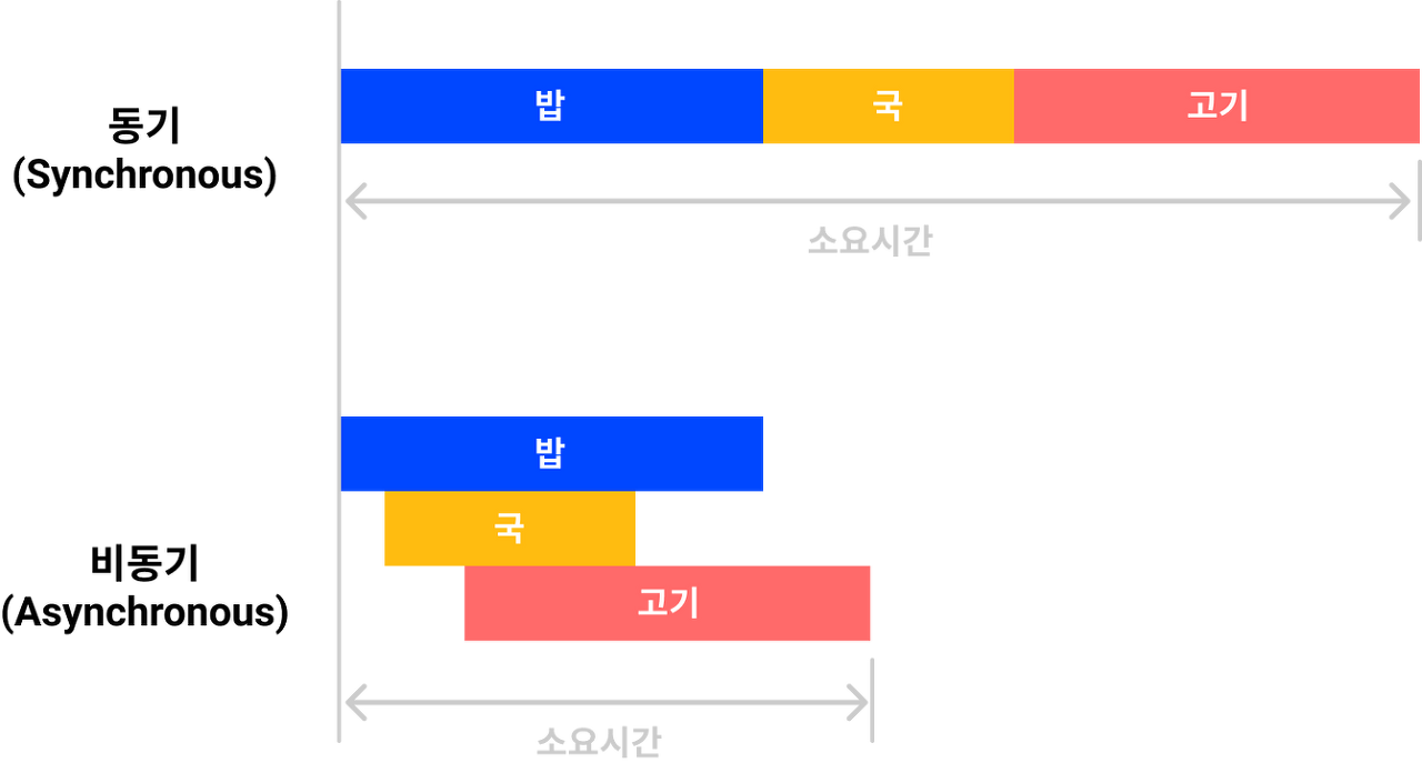 결과를 기다리는 시간이 없기 때문에 비동기 방식이 소요되는 시간이 더 짧다.