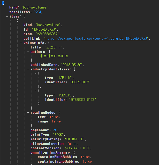 주소창에서 해당 값만 수정해주어도 그 값에 대한 책 정보를 제공한다.