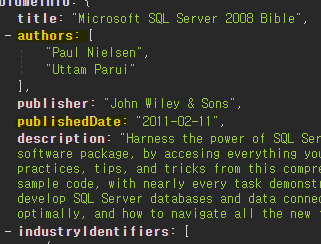필요한 정보인 작가와 발행일은 각각 authors, publicshedDate의 이름으로 들어온다.
