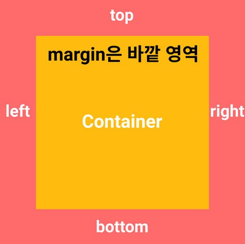 Container를 기준으로 테두리인 border를 기준으로 안쪽이 Padding, 바깥쪽이 margin이다.