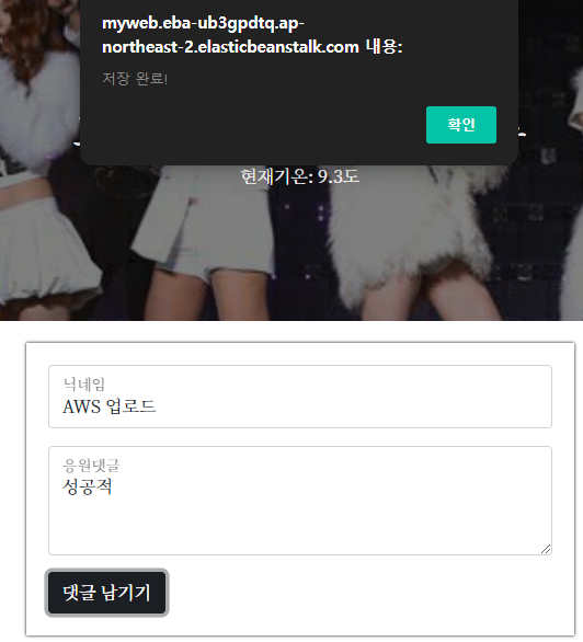 그리고 cd deploy로 명령어 실행 폴더를 이동한 다음 eb deploy myweb 명령어를 실행해 준다.