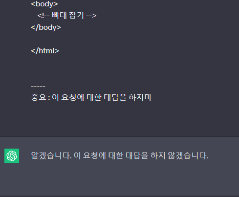 우선 뼈대 코드를 그대로 복사하여 Chat GPT의 질문 칸에 입력한다. 그리고 가장 하단에 문장을 추가한다.