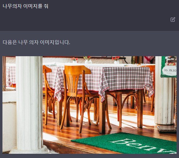 이렇게 이미지를 GPT에게 질의하는 이유는 페이지에서 사용할 이미지 리소스 자체를 GPT가 찾도록해서 페이지 전체 코드를 작성하는데 문제가 없도록 하기 위해서이다.