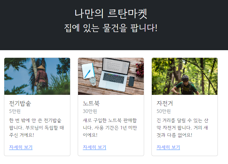 <h1 class="text-white">나만의 르탄마켓</h1>